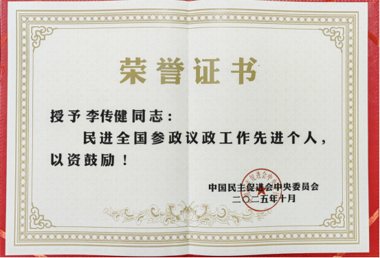 李传健担任日照市政协常委、民进曲阜师大基层委员会副主委兼日照校区支部主委,经济学院院长、教授。他以坚定的政治立场和务实的议政成果,生动诠释了服务社会、贡献大局的理念。他长期深耕农业发展、城乡一体化及金融政策研究,将专业能力转化为推动发展的实际对策,多篇高质量提案与社情民意被采用,既为地方经济社会发展献计献策,也为学校参政议政工作积累了宝贵经验。