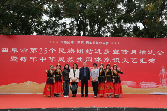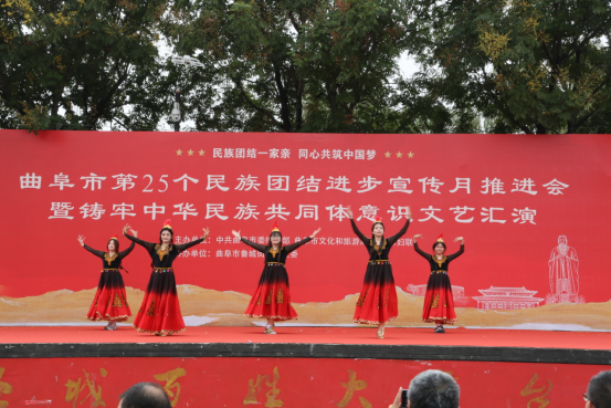 9月24日上午,学校参加曲阜市第25个民族团结进步宣传月推进会暨铸牢中华民族共同体意识文艺汇演活动。学校党委统战部、学生工作处出席活动。维吾尔族同学们的节目《新疆舞串烧》成为文艺汇演的一大亮点,她们将新疆舞蹈的灵动与活力展现得淋漓尽致,既生动展现了曲园学子积极向上、自信昂扬的良好精神风貌,更以艺术的形式勾勒出各民族同胞手足相亲、守望相助的美好画面,为民族团结进步宣传月活动增添了浓墨重彩的一笔。
